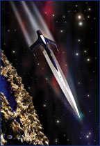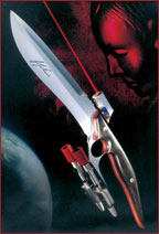 Couteau futuriste équippé de deux lance-fusées miniatures à déclenchement à bouton et d'un viseur laser 635nm